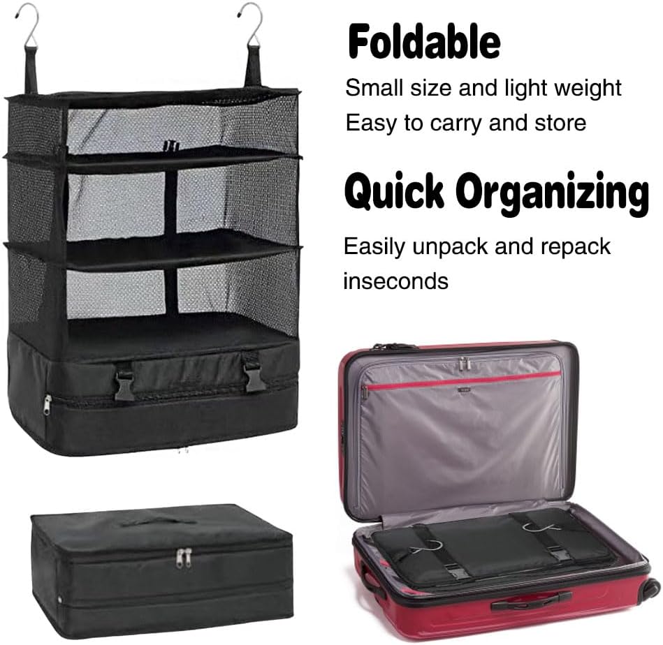 Organiza tus viajes con este práctico organizador colgante para maletas: prepara, cuelga y empaca sin esfuerzo.